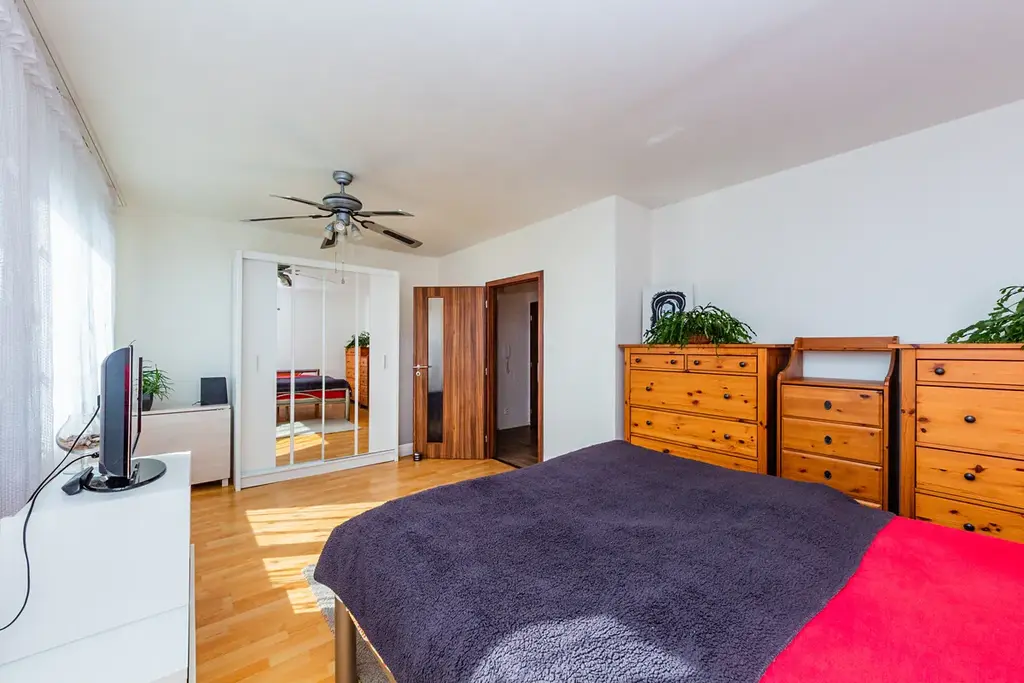 Obývací pokoj s kuchyňským koutem (27,4 m²) se vstupem na zasklenou lodžii (6 m²), ložnice s jižní orientací (21 m²; tento pokoj lze rozdělit na 2 pokoje s vlastním vstupem), samostatná šatna, koupelna s vanou a oddělené WC.