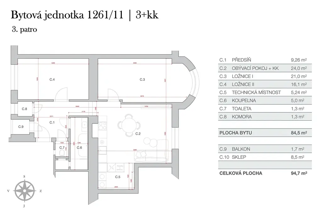 Dispozice bytu 3+kk: