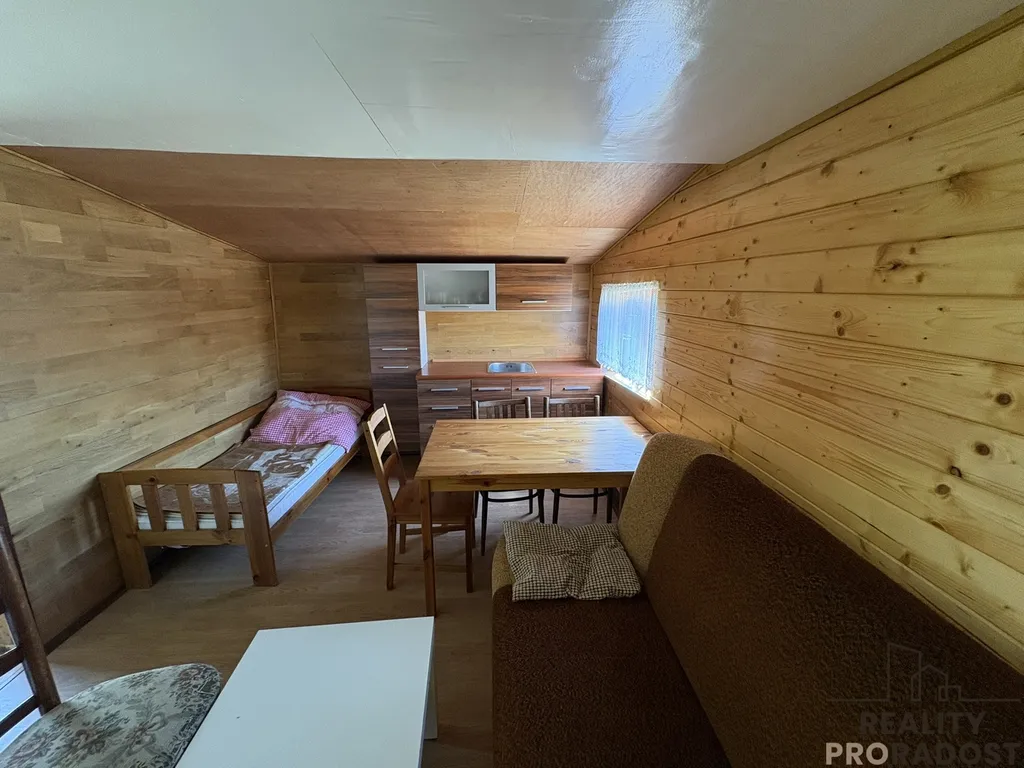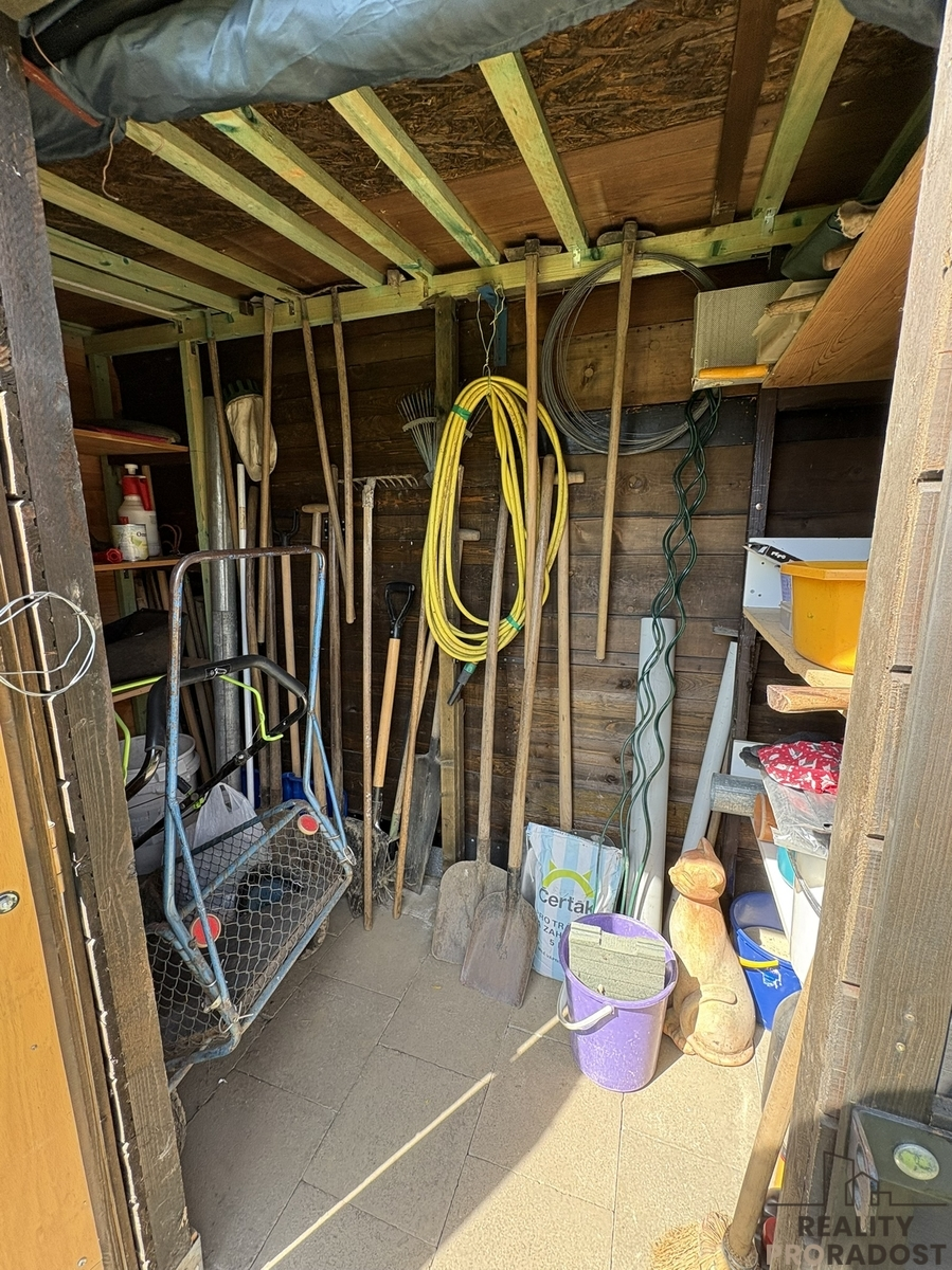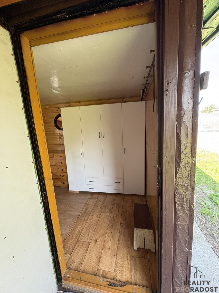 K chatě rovněž náleží zateplený oddělený prostor na nářadí a samostatná místnost připravená pro suché WC.