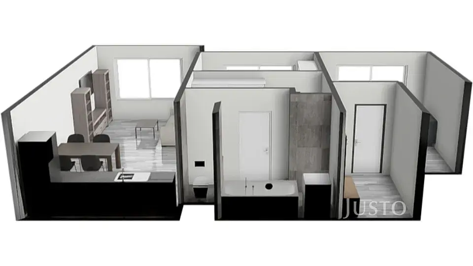 Byt má výměru cca 60 m², je bez balkonu, nachází se v domě s výtahem.