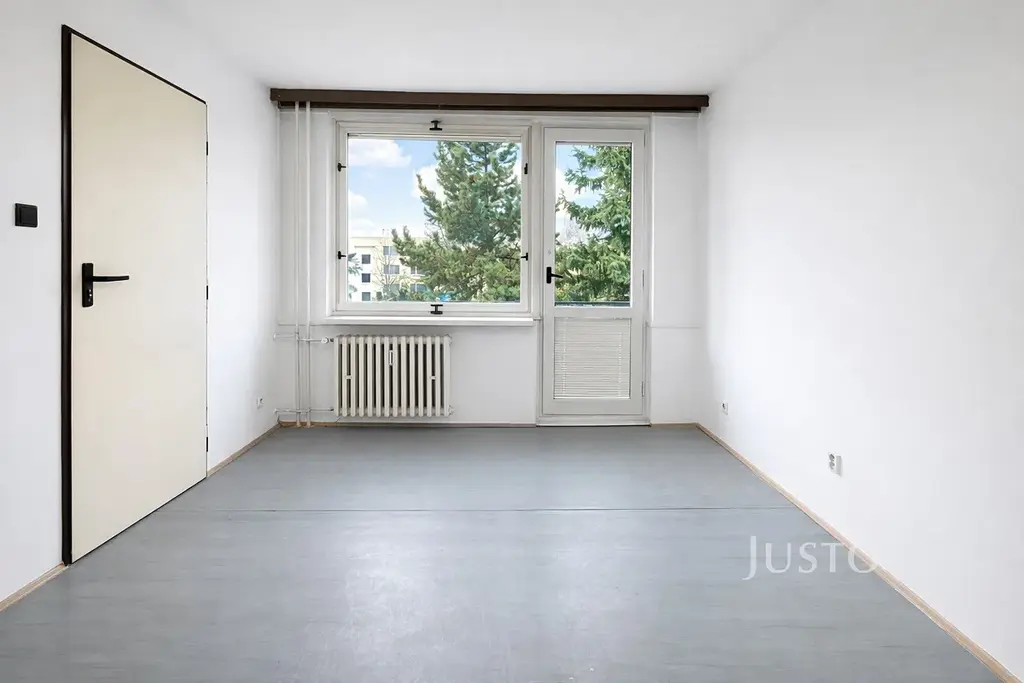 Byt je umístěn v prvním patře panelového domu s výtahem a je částečně vybaven. Ze vstupní chodby vedou dveře vlevo do koupelny s WC a sprchovým koutem. Naproti vstupu je kuchyně vybavená kuchyňskou linkou, která je průchozí do světlého pokoje. Z pokoje je přímý vstup na jižně orientovaný balkon, odkud je příjemný výhled do okolí a dostatek denního světla po celý den. K bytu náleží sklep o ploše 1 m², který poskytuje další úložný prostor.