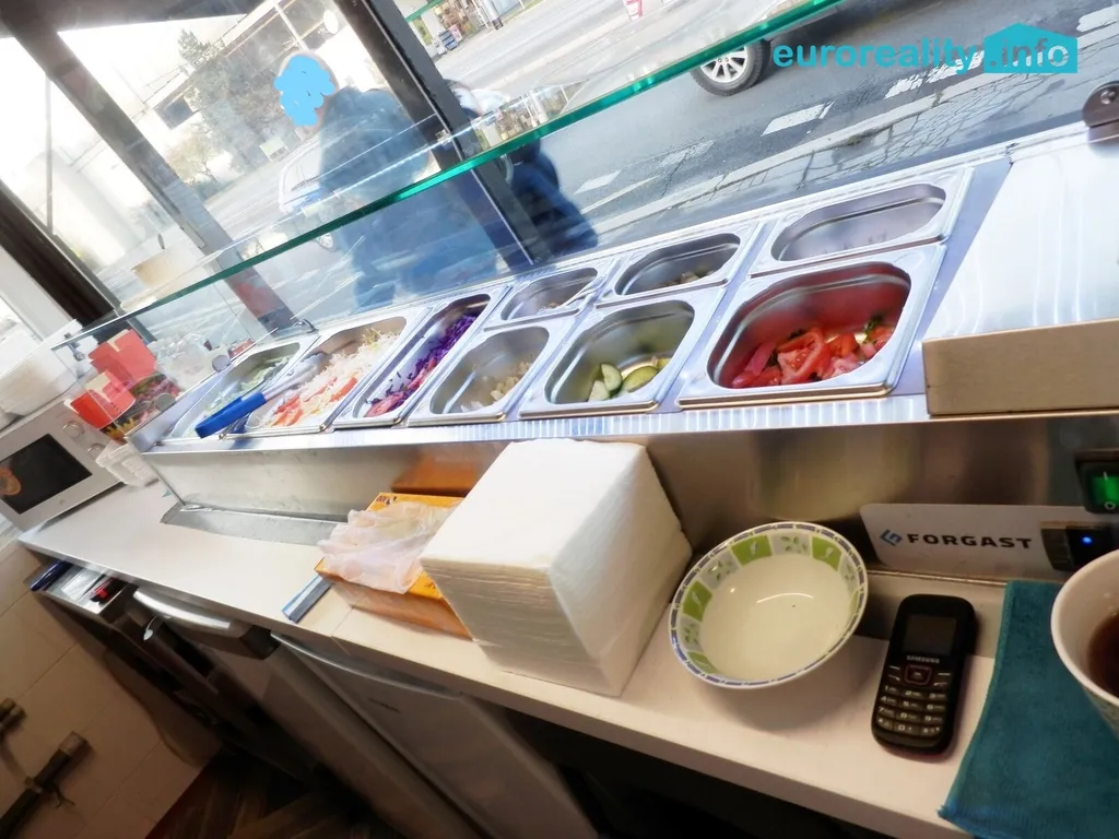 Nabízí se plně vybavený 3x lednicí, mrazákem, kávovarem, vitrínou na saláty a omáčky, nerez stoly a policemi, fritézou, grily, nerez dřezem, digestoří. Seznam předložíme vážným zájemcům.
