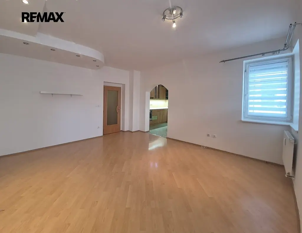 Byt má plastová okna včetně nových vnitřních rolet den/noc, venkovních rolet a pěknou prostornou kuchyňskou linku se spotřebiči.
