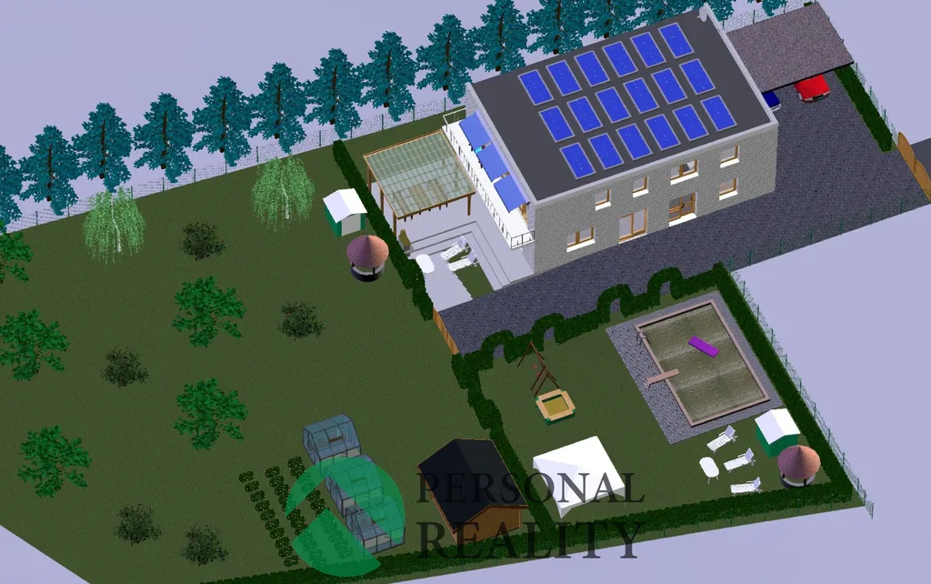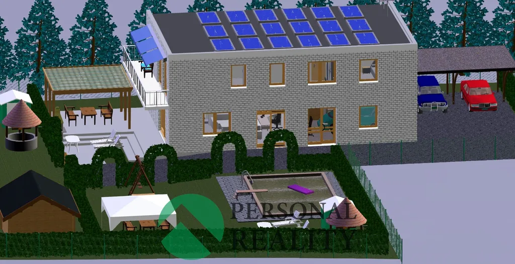 Celková plocha 1 640 m² (včetně podílů na přístupových cestách) poskytuje dostatek soukromí pro dům, velkou zahradu i relaxační zónu.