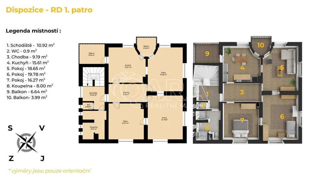 1. Patro - byt 3+1 s podkrovím (celkem 193 m²)