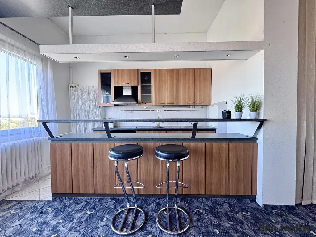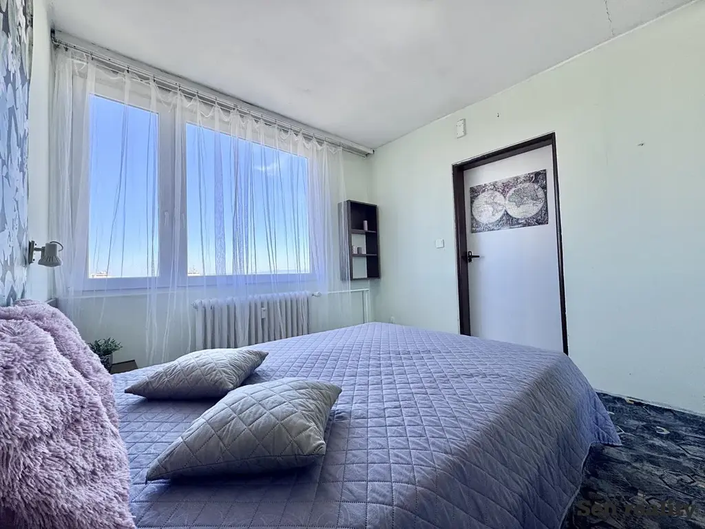 Dominantou bytu je prostorná hlavní obytná místnost se zvýšeným stropem 335 cm a krásným výhledem do okolí. Tento prvek dává prostoru příjemný pocit otevřenosti a vzdušnosti, díky kterému byt působí větší a pohodlnější. Zároveň nabízí zajímavé možnosti pro budoucí úpravy, například vybudování patra na spaní.