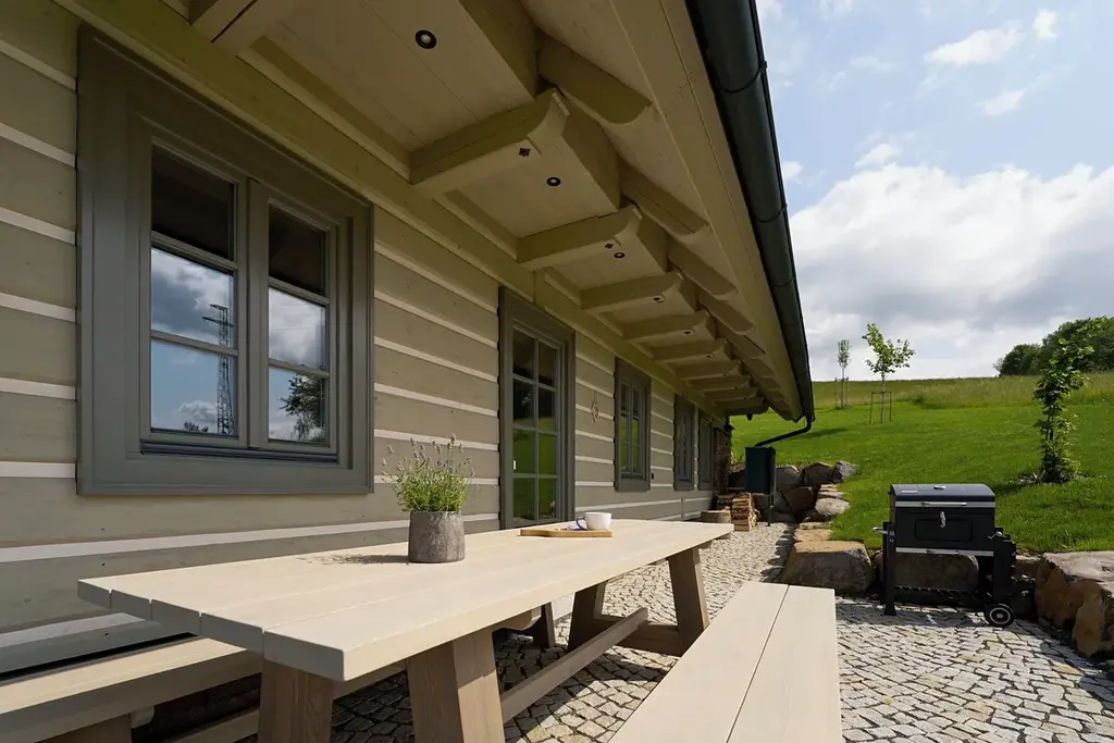 Venkovní terasa s grilem a sprchou
