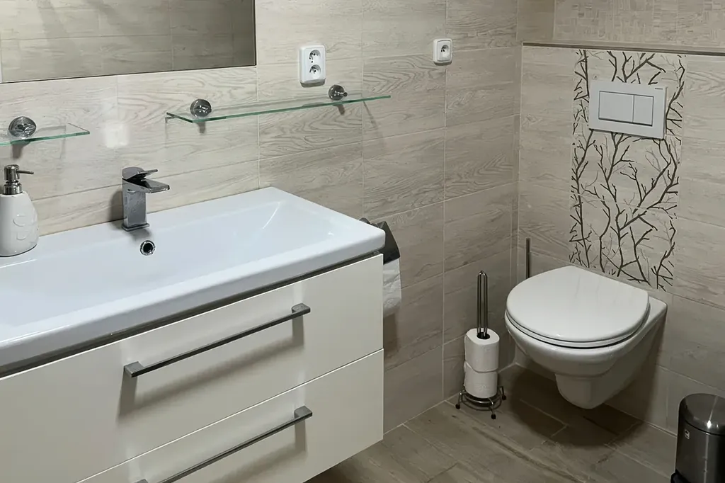 Přilehlý bazén s rozměry 10m x 5m, a technologickým zázemím, je vyhřívaný a lze jej proto využívat i v chladnějším počasí.