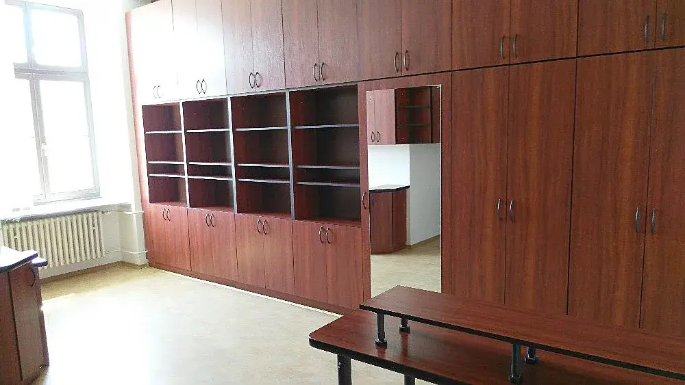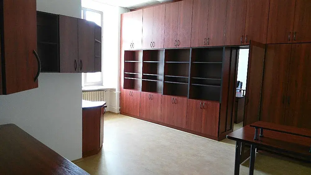 Kancelář je vybavena starším, avšak funkčním nábytkem. Nábytek lze v případě potřeby vystěhovat.