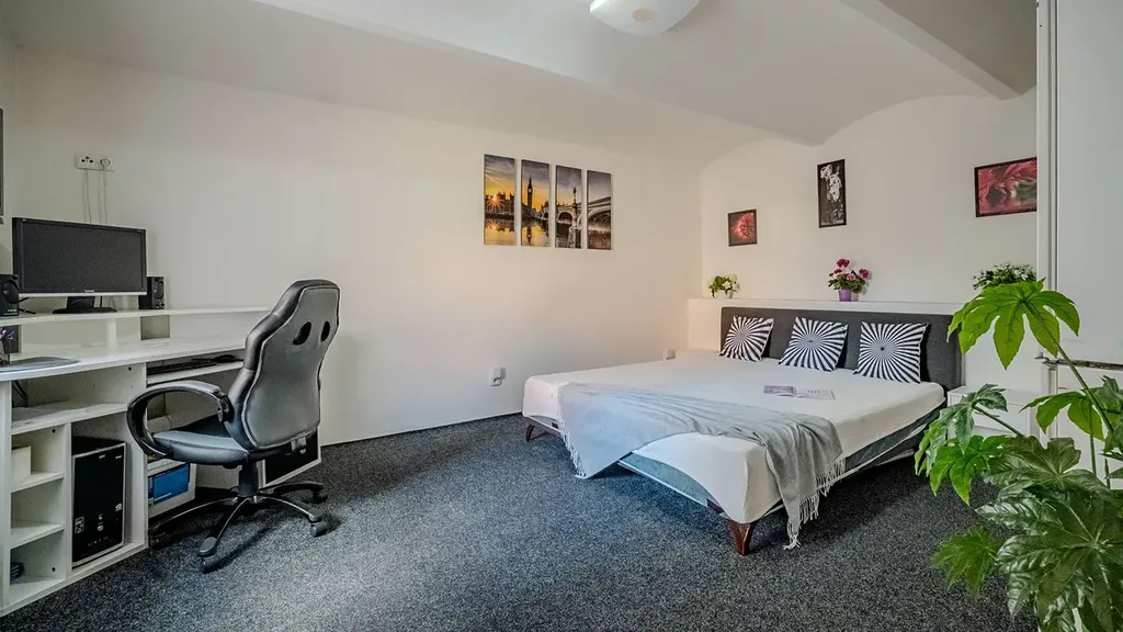 O vytápění a ohřev vody se stará moderní plynový kondenzační kotel, který zajišťuje příjemné bydlení s nízkými provozními náklady.