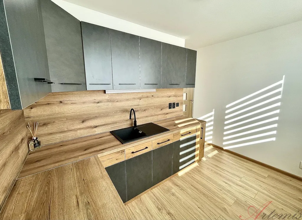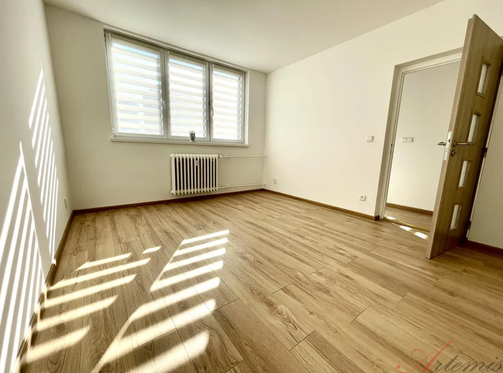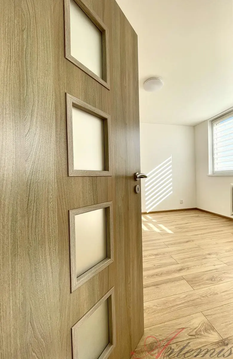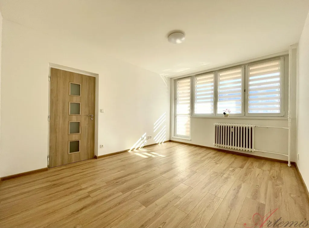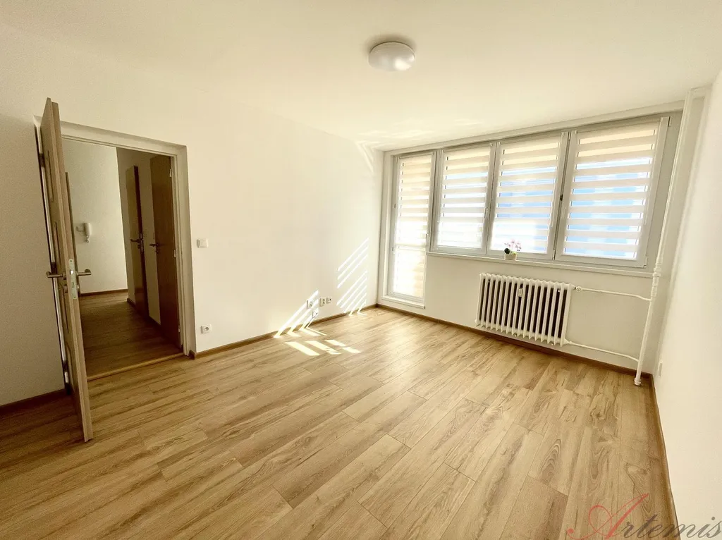 Nově zrekonstruovaný slunný byt s balkonem je situován na severovýchodní stranu a nachází se v osmém podlaží revitalizovaného domu. Disponuje kuchyňskou linkou s indukční varnou deskou, elektrickou troubou, myčkou, neméně digestoří. (výrobce Electrolux / Philco) Podlahové krytiny tvoří vinylové plovoucí podlahy, v sociálním zařízení je dlažba. Koupelně dominuje prostorný sprchový kout.