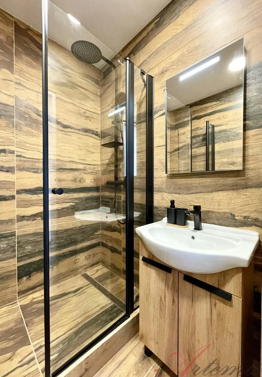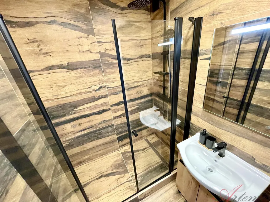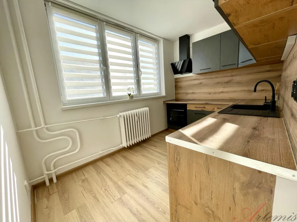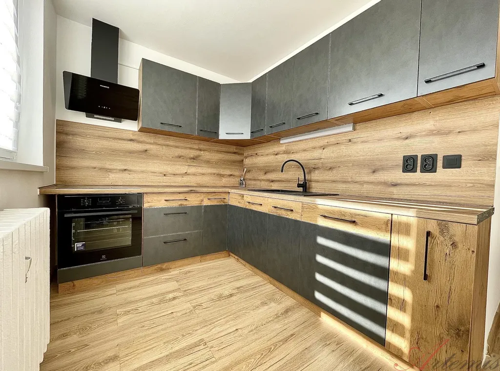 Nově zrekonstruovaný slunný byt s balkonem je situován na severovýchodní stranu a nachází se v osmém podlaží revitalizovaného domu. Disponuje kuchyňskou linkou s indukční varnou deskou, elektrickou troubou, myčkou, neméně digestoří. (výrobce Electrolux / Philco) Podlahové krytiny tvoří vinylové plovoucí podlahy, v sociálním zařízení je dlažba. Koupelně dominuje prostorný sprchový kout.