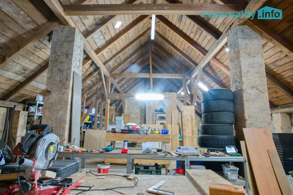 • stodola s dílnou a kotelnou (zastavěná plocha cca 109 m², podlahová 219 m²,)