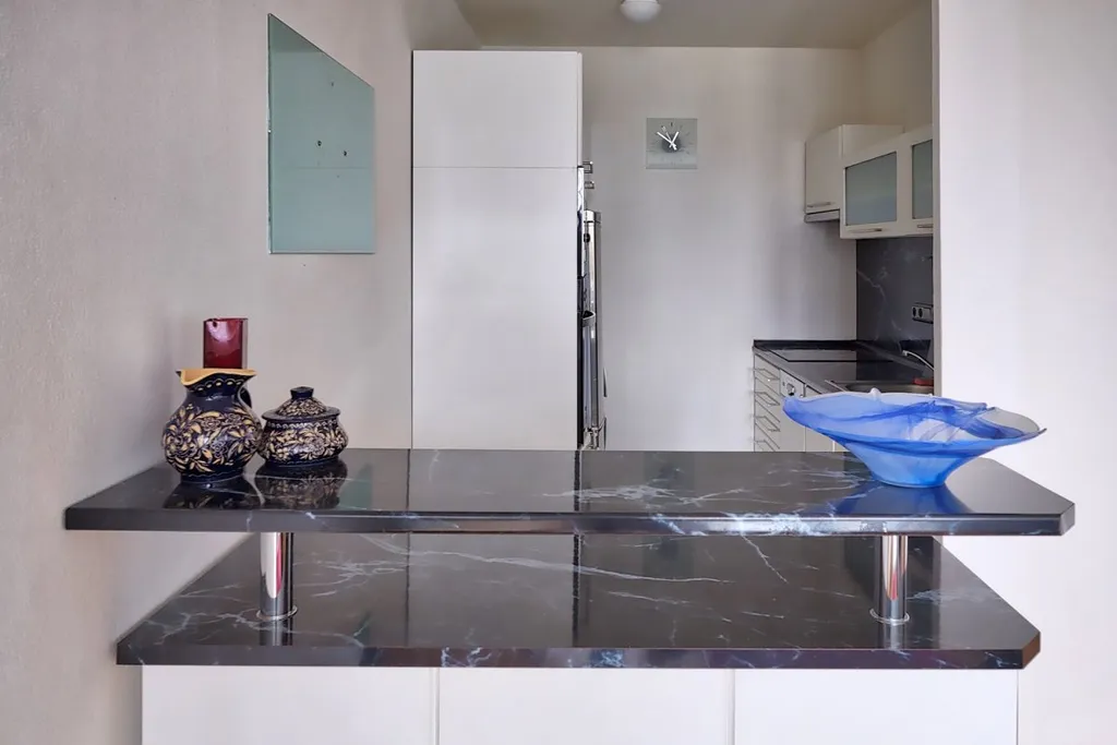 Jedná se o plně zařízený byt, který zahrnuje možnost využít sklepní kóji. Obývací pokoj s kuchyní je vybaven kuchyňskou linku se sklokeramickou varnou deskou, troubou, myčkou, mikrovlnou troubou, lednicí, sedací soupravou, konferenčním stolkem, obývací stěnou.