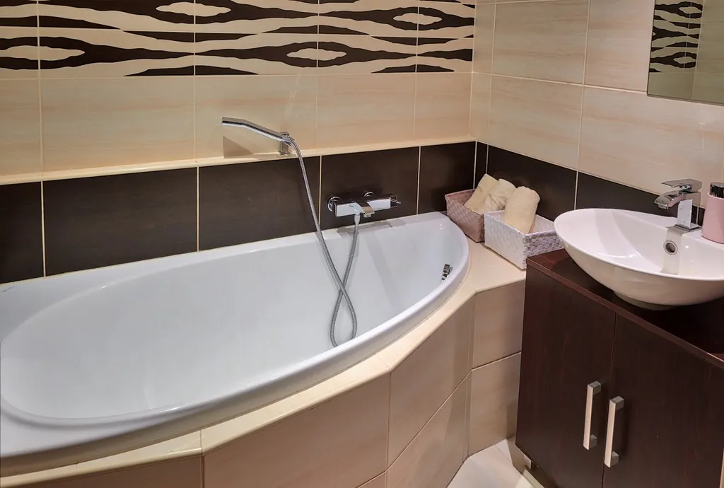 Dále se zde nachází ložnice s postelí a skříní. V koupelně se nachází rohová vana, umyvadlo, zrcadlo a Wc. V bytě jsou laminátové podlahy a v koupelně dlažba. Vytápění zajišťuje vytápění s radiátory.