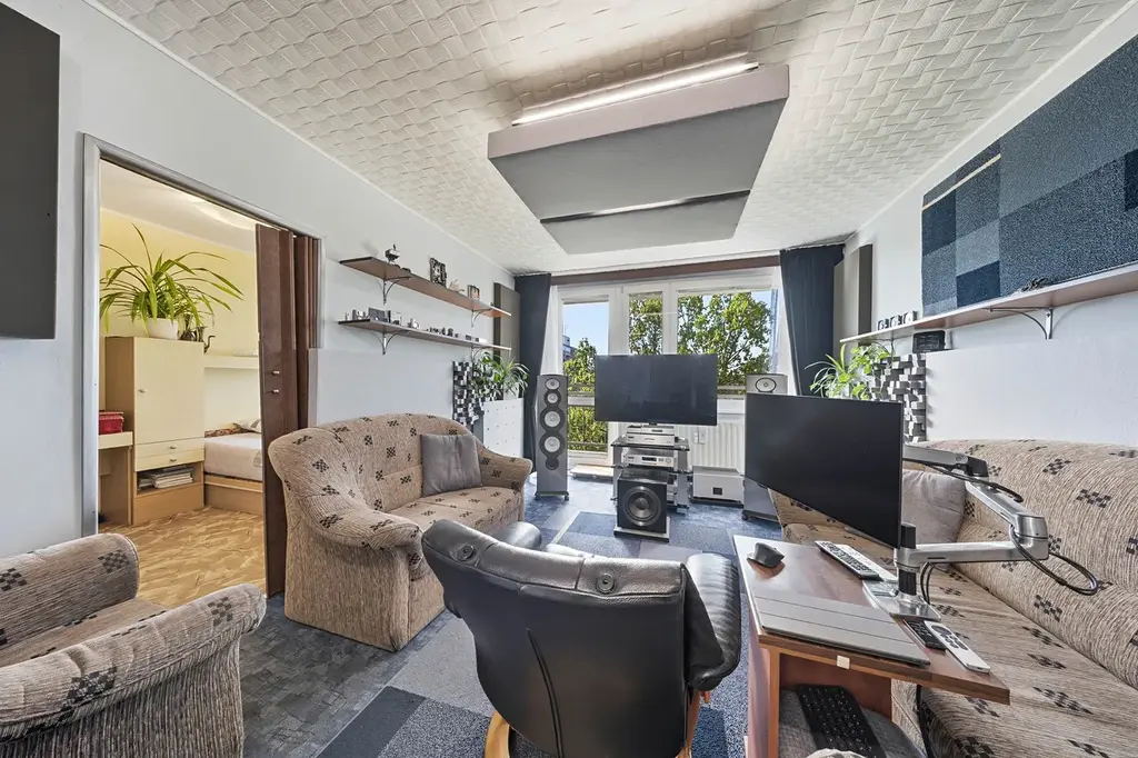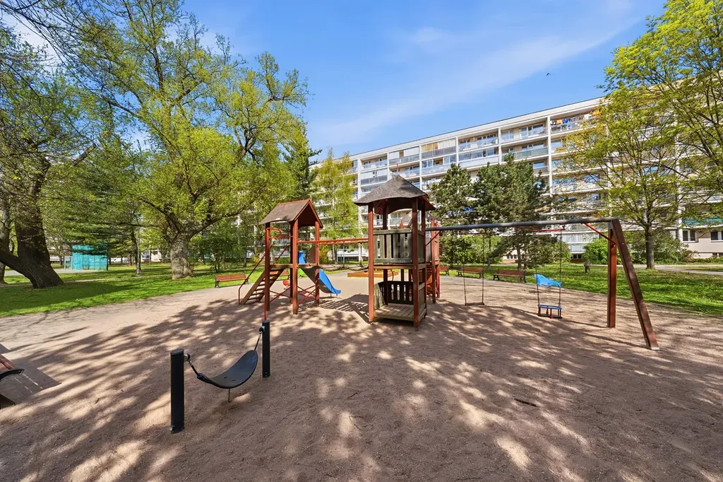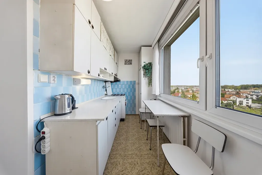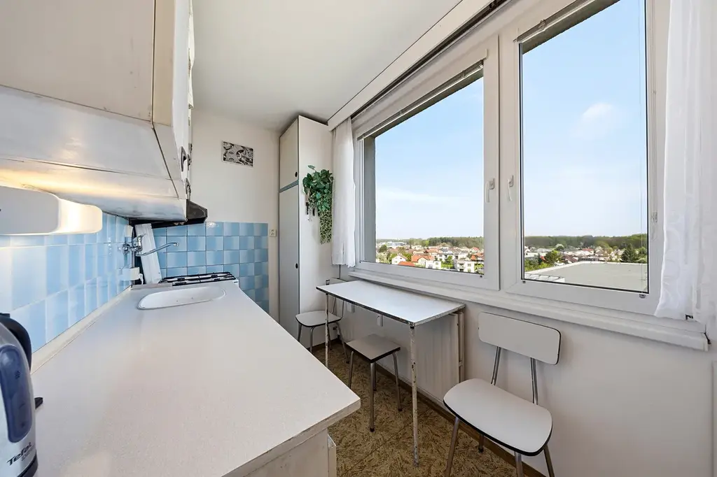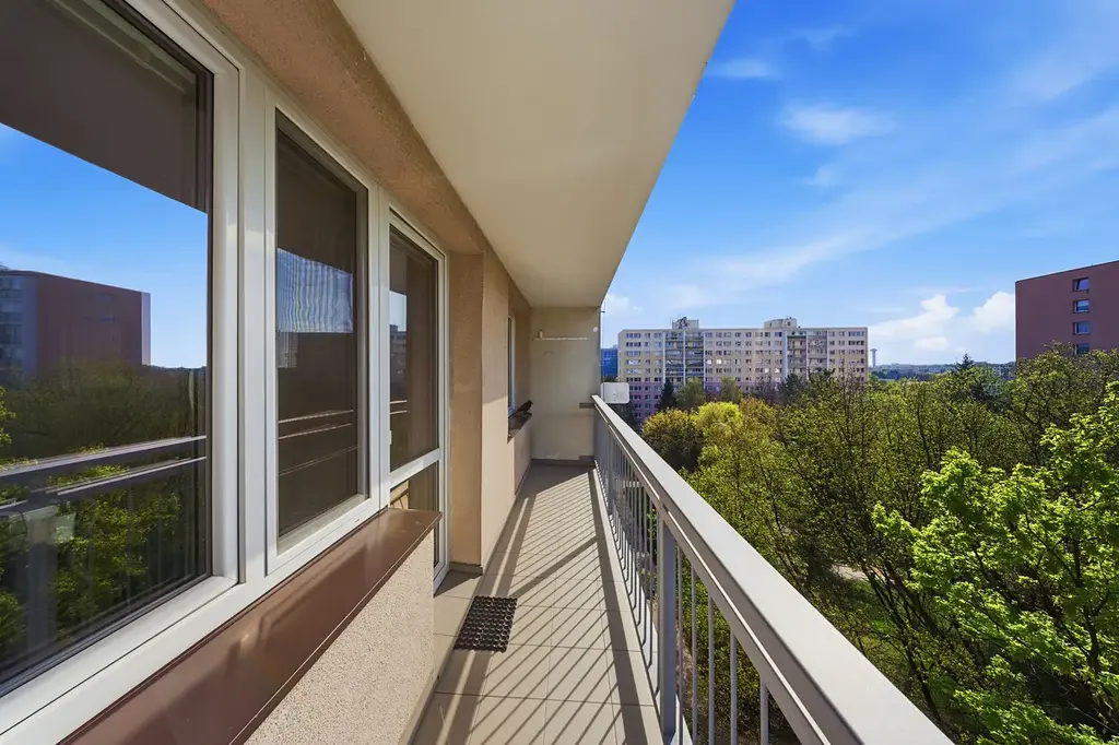 Jedná se o poslední patro, které přináší klid bez dupání nad hlavou, více soukromí a krásné výhledy do okolí. Díky rekonstrukci střechy a přesahu zastřešení lodžie se byt v létě nepřehřívá a v zimě naopak využívá nízké slunce k přirozenému ohřevu interiéru.