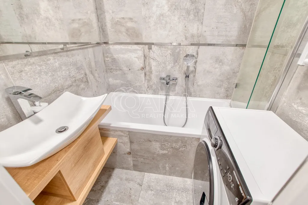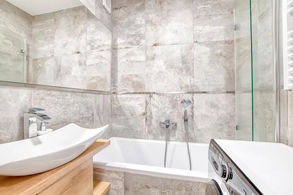 V roce 2024 prošel byt kompletní a nákladnou rekonstrukcí. Při realizaci byl kladen důraz na použití kvalitních materiálů a barevné sladění do nadčasových odstínů. V celém bytě je položena luxusní vinylová podlaha, zatímco v koupelně a na toaletě najdete vkusnou dlažbu. Koupelna je vybavena vanou a umyvadlem se zrcadlem, přičemž toaleta zůstala pro větší komfort oddělena.