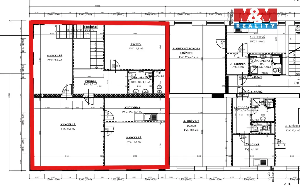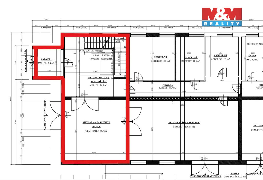 V 1. nadzemním podlaží se nachází 2 samostatné místnosti (34 m² a 35 m²) s možností přímého vjezdu. Toto řešení je perfektní například pro showroom, skladování, e-shop s výdejem zboží, servis či lehkou výrobu. Výborná dostupnost výrazně usnadňuje logistiku i obsluhu zákazníků.