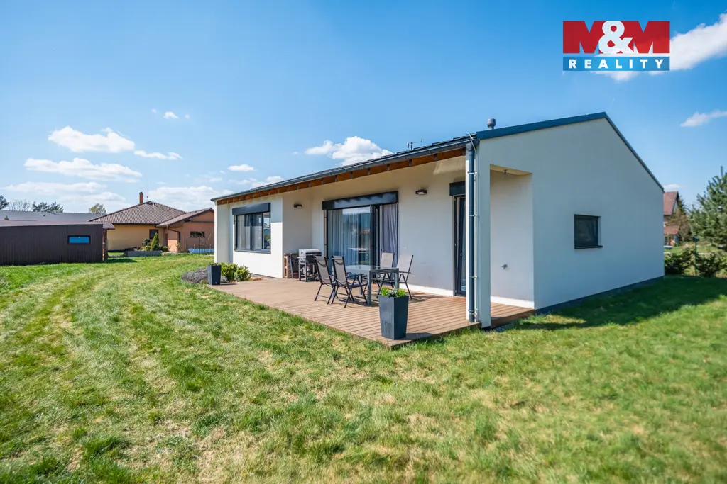 Na pozemku o výměře 1780 m² s automatickou závlahou z vlastní kopané studny stojí druhý plně vybavený domek pro hosty/rodiče (2+kk, 48 m²) vhodný k celoročnímu užívání. Celá nemovitost je zabezpečena systémem Jablotron a napojena na optickou síť. Veškerá občanská vybavenost je dostupná přímo v obci a blízkém okolí.