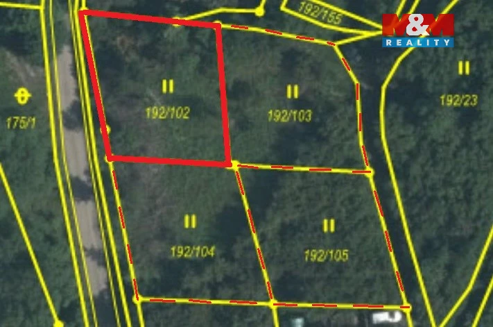 K prodeji jsou momentálně čtyři samostatné pozemky na sebe navazující.
