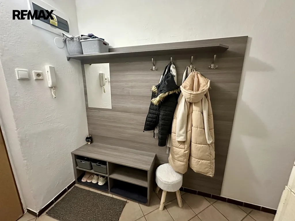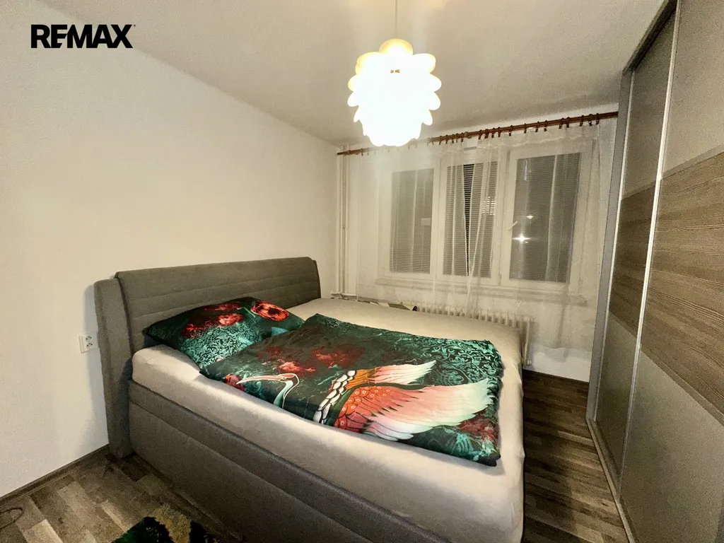 Byt se skládá z předsíně, ložnice s vestavěnou skříní, dalšího samostatného pokoje a obývacího pokoje s kuchyňským koutem, kde zůstává kuchyňská linka vybavená sporákem, indukční varnou deskou, digestoří a myčkou. Součástí vybavení je i lednička s mrazákem. Koupelna a toaleta jsou oddělené, a na chodbě je k dispozici další vestavěná skříň, která poskytuje spoustu úložného prostoru.