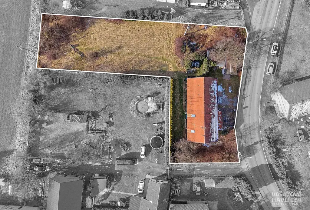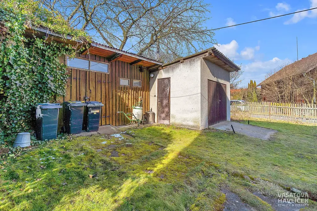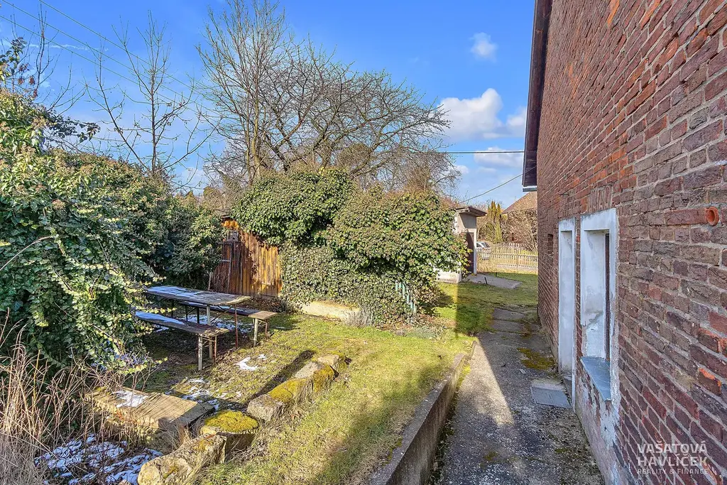 Celková plocha pozemku je 2 144 m². Příjezd k domu je po asfaltové komunikaci, celý pozemek je oplocen. Zahrada je pokryta trávou a vzrostlými stromy vč. ovocných a keře. Parkování je možné v garáži nebo na zpevněné ploše před domem.