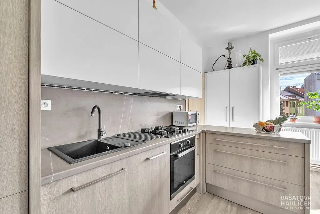 Byt prošel kompletní rekonstrukcí před sedmi lety, kdy byly provedeny úpravy jako sádrokartonové podhledy, plastová okna, nové rozvody elektřiny v mědi a nová instalace vody, odpadů a topení. Součástí úprav byla také nová kuchyňská linka, koupelna a samostatná toaleta. V obytných místnostech je plovoucí podlaha, v koupelně a na toaletě dlažba. Dispozici bytu tvoří prostorný obývací pokoj propojený s kuchyní a jídelním koutem, dva samostatné pokoje, chodba, koupelna a samostatná toaleta. Díky orientaci na severozápad a jihovýchod je byt příjemně prosluněný po celý den.