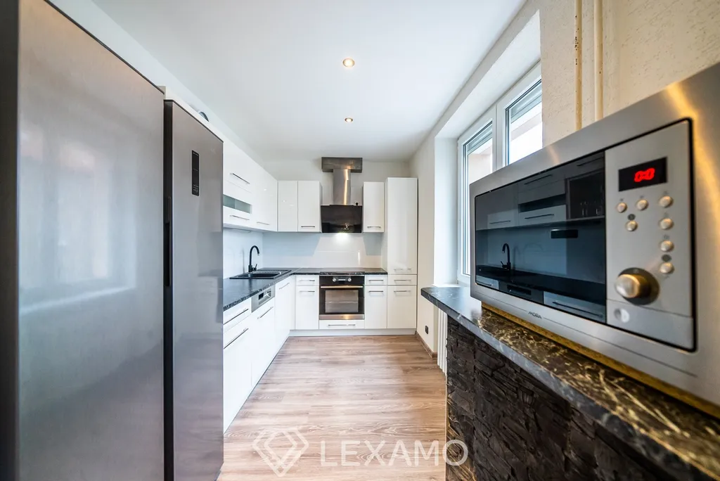 Byt je ve velmi krásném stavu. Součástí vybavení je pouze kuchyňská linka, koupelnové skříňky a vestavěná skříň v ložnici. Ve všech místnostech jsou instalovány venkovní žaluzie, které výrazně zlepšují tepelnou i hlukovou izolaci. K bytu náleží také sklepní kóje. Parkování je možné na veřejných místech před domem nebo v okolních ulicích.