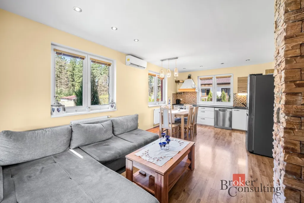 Užitná plocha domu činí 93 m². Dominantou přízemí je světlý obývací prostor propojený s kuchyňským koutem a přímým vstupem na krytou terasu a zahradu. Díky velkým francouzským oknům působí celý prostor vzdušně a přirozeně navazuje na venkovní část domu, která nabízí ideální místo pro rodinné posezení, relaxaci nebo letní grilování.
