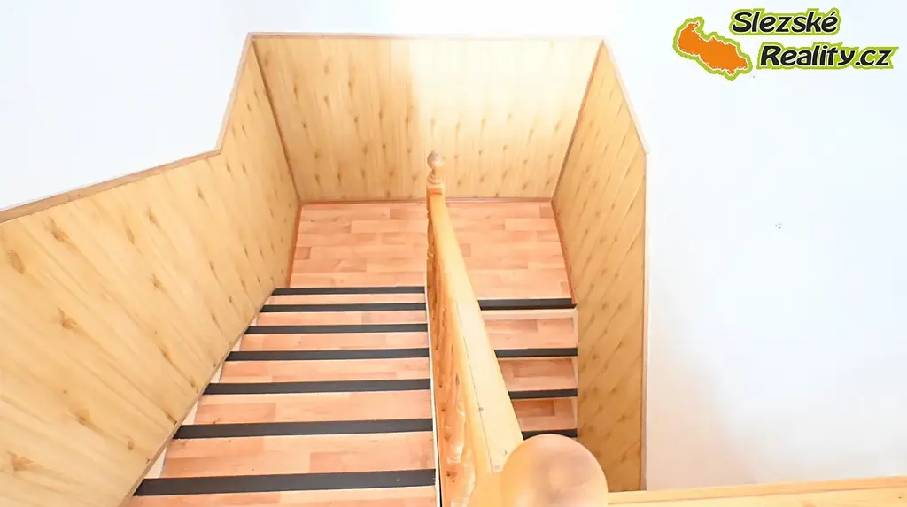 V patře se nachází druhá bytová jednotka o dispozici 3+0, která zahrnuje obývací pokoj s lodžií, dva samostatné pokoje, koupelnu s toaletou a další koupelnu se sprchovým koutem.