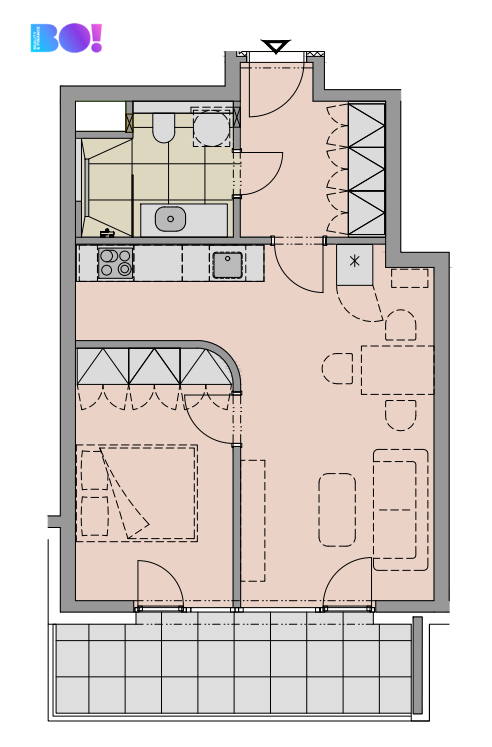 BO! Reality vám nabízí k pronájmu byt 2+kk s velkorysou lodžií, situovaný ve 4. patře novostavby s výtahem. Byt je součástí prestižního a oblíbeného projektu Rezidence Nová Karolina.