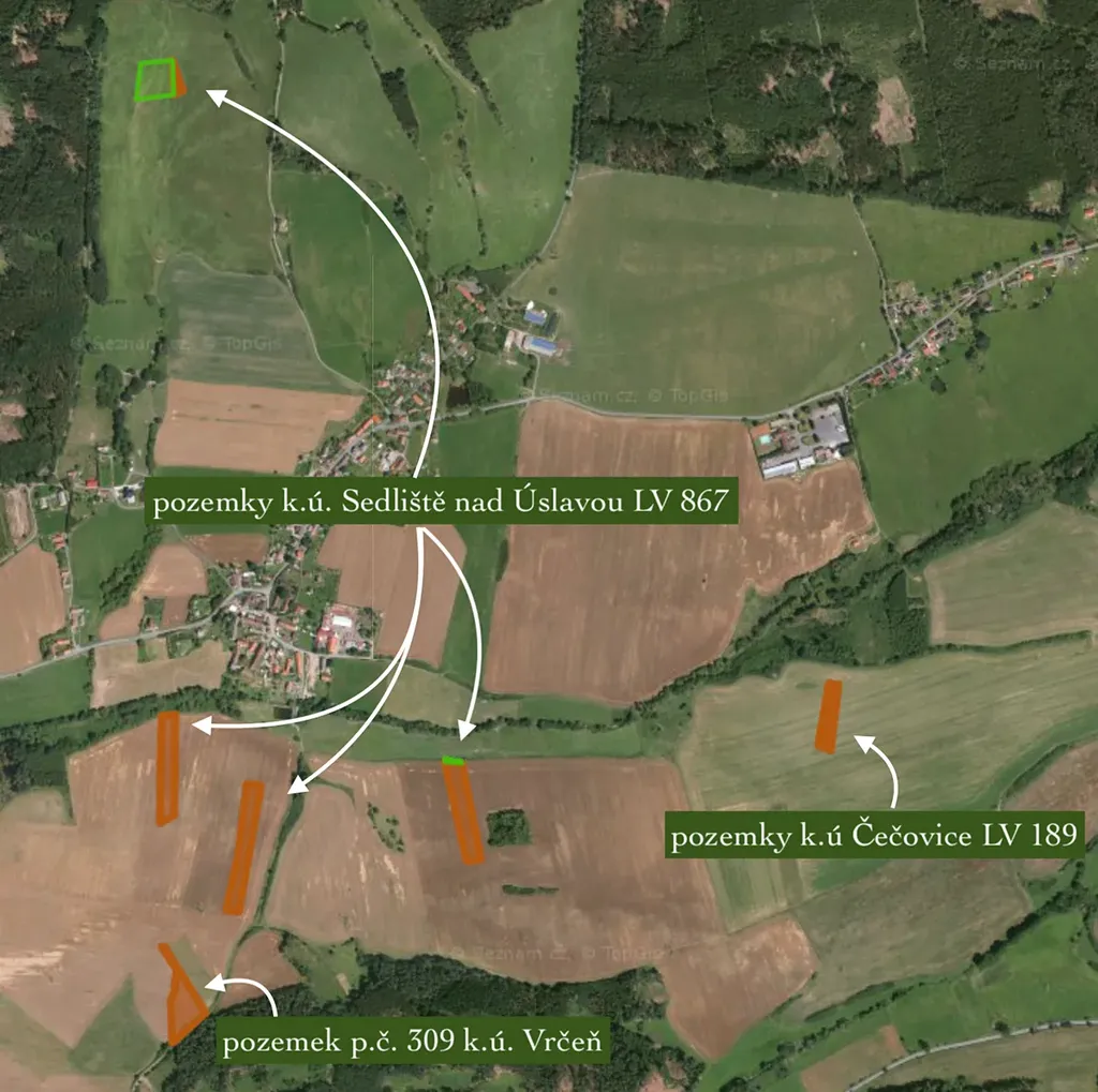 Prodej orné půdy 30.508m2 v katastru Sedliště nad Úslavou