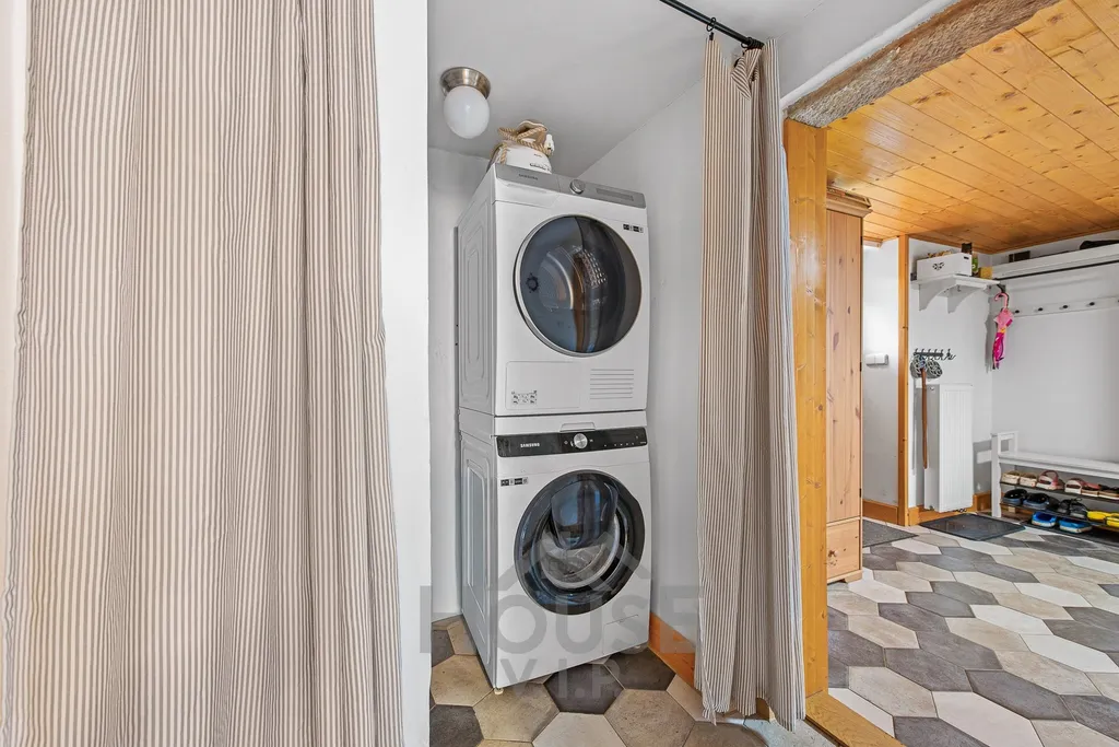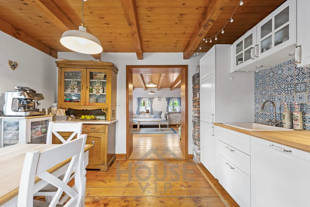 Ve druhém podlaží jsou dvě prostorné ložnice a velká hala, kterou lze využít jako odpočinkovou zónu nebo pracovnu. Interiér působí velmi útulně a vkusně — dřevěné podlahy, obklady a přiznané trámy vytvářejí hřejivou atmosféru, zatímco moderní vybavení zajišťuje pohodlí pro každodenní užívání.