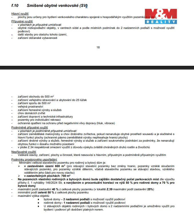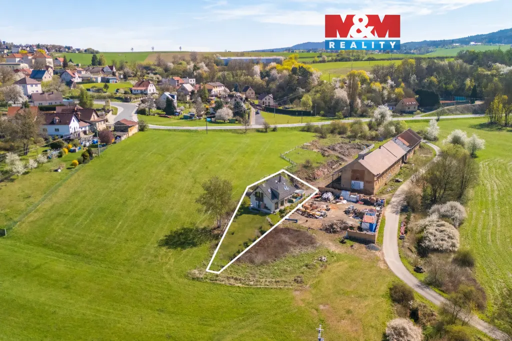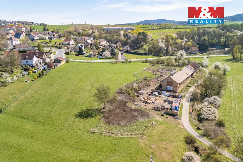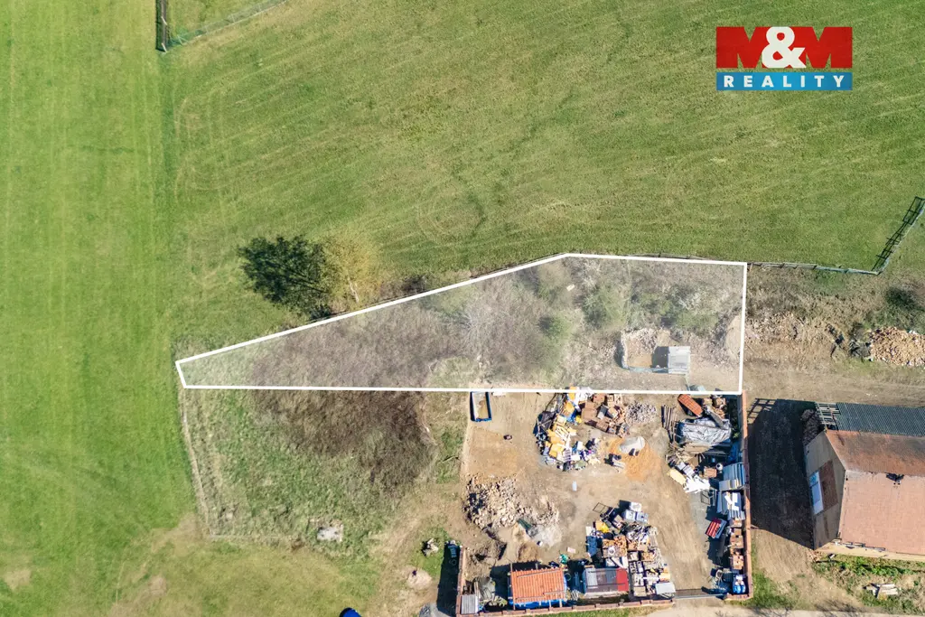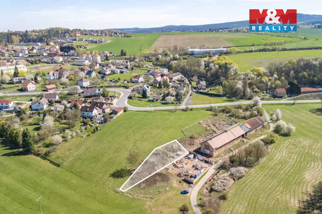 Pozemek má nepravidelný tvar a nachází se na okraji obce, což zajišťuje dostatek soukromí i krásné výhledy do okolní krajiny. Dle územního plánu je zde možná výstavba rodinného domu – například moderního domu o jednom nadzemním podlaží s obytným podkrovím, jak je znázorněno ve vizualizaci.