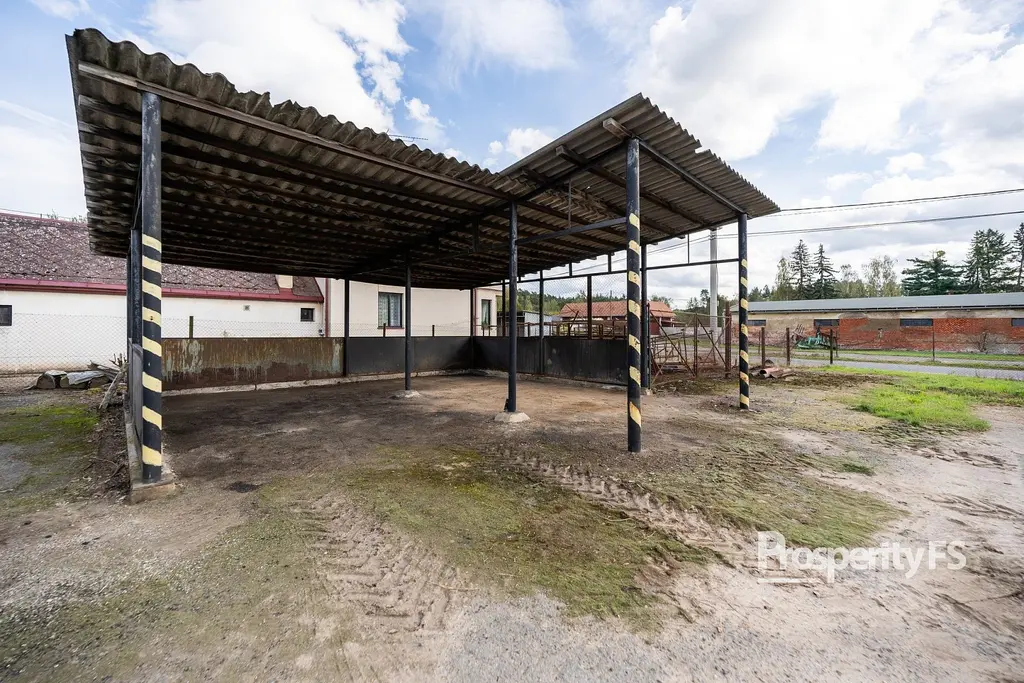 Na rozlehlém pozemku se nacházejí dílny a sklady o celkové ploše cca 350 m². Pro pohodlné parkování či skladování slouží prostorný přístřešek. Zpevněná manipulační plocha s asfaltovým povrchem zajišťuje jednoduchou a bezpečnou manipulaci s nákladem a celý areál je oplocen s možností zabezpečovacího systému.