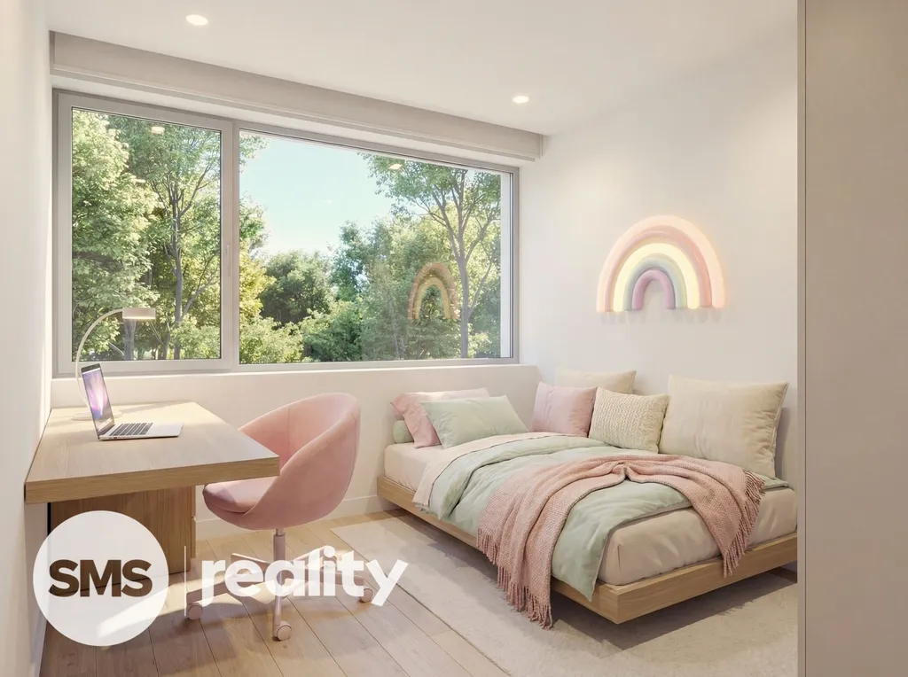 Patro (2. NP): Klidová zóna. Dva samostatné dětské pokoje a hlavní ložnice se soukromou průchozí šatnou a místem navrženým pro kosmetický stolek u okna. Na patře se nachází velkorysá koupelna vybavená vanou i sprchovým koutem (Walk-in).