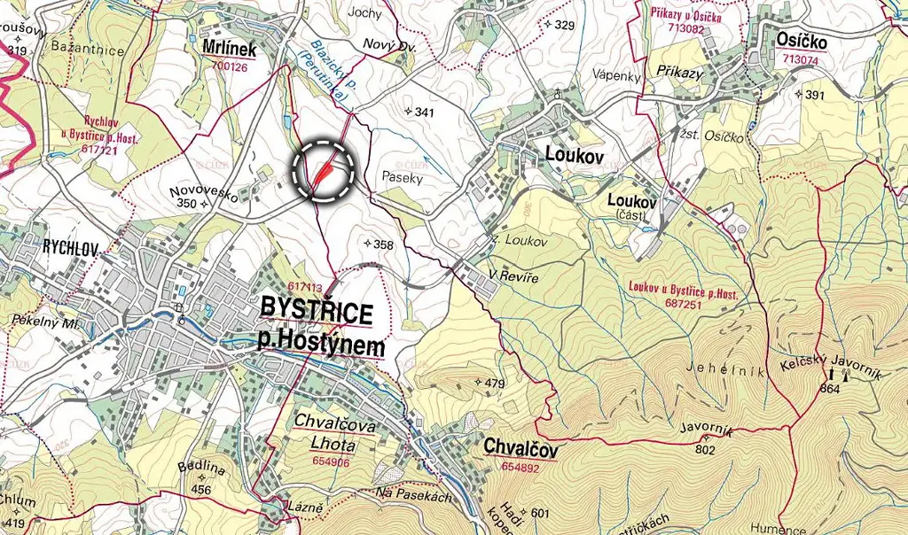 Pozemek se nachází při hranicích sousedního katastrálního území Bystřice pod Hostýnem. Leží při silnici severně od obce, pohodlně přístupný. Zemědělský celek je rovinatý,