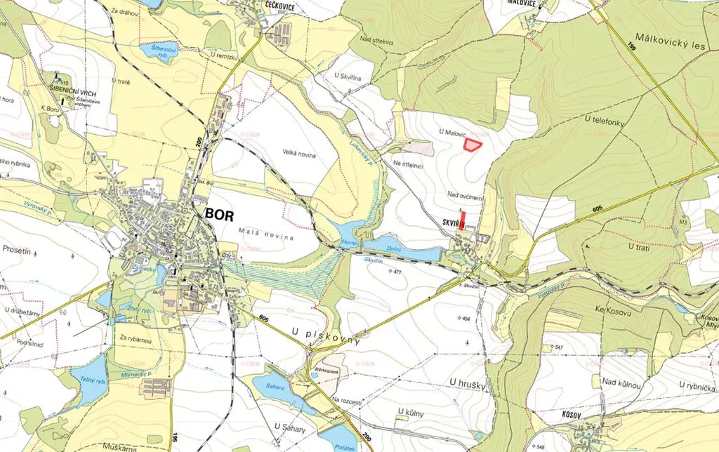 V katastrálním území Skviřín, okres Tachov, nabízím k prodeji vlastnictví 2/3 na dvou zemědělských pozemcích vedených na listu vlastnictví č. 861. Jedná se o parcely č. 467 a 1000/31, obě vedené jako orná půda.