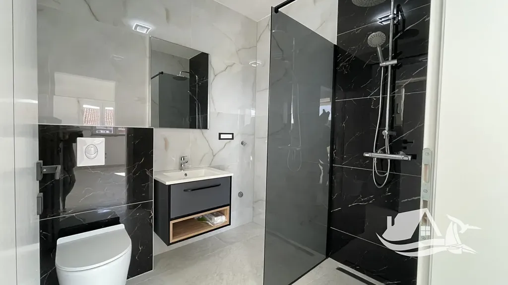 V jedné z nejpříjemnějších částí městečka Tribunj se nachází tato právě dokončená moderní novostavba, která nabízí kombinaci klidné lokality, velkorysého prostoru a nádherných výhledů na moře. Nemovitost je vzdálena jen 600 metrů od městské pláže Zamalin a přibližně 650 metrů od centra Tribunje, takže moře, promenáda, restaurace i kavárny jsou pohodlně dostupné pěšky.