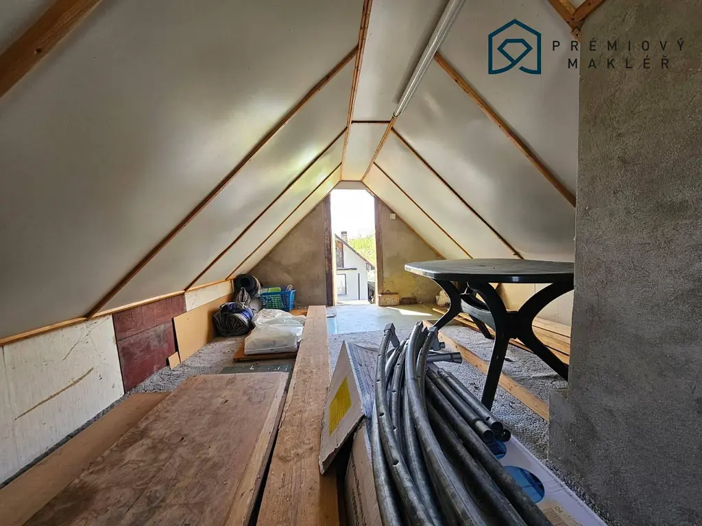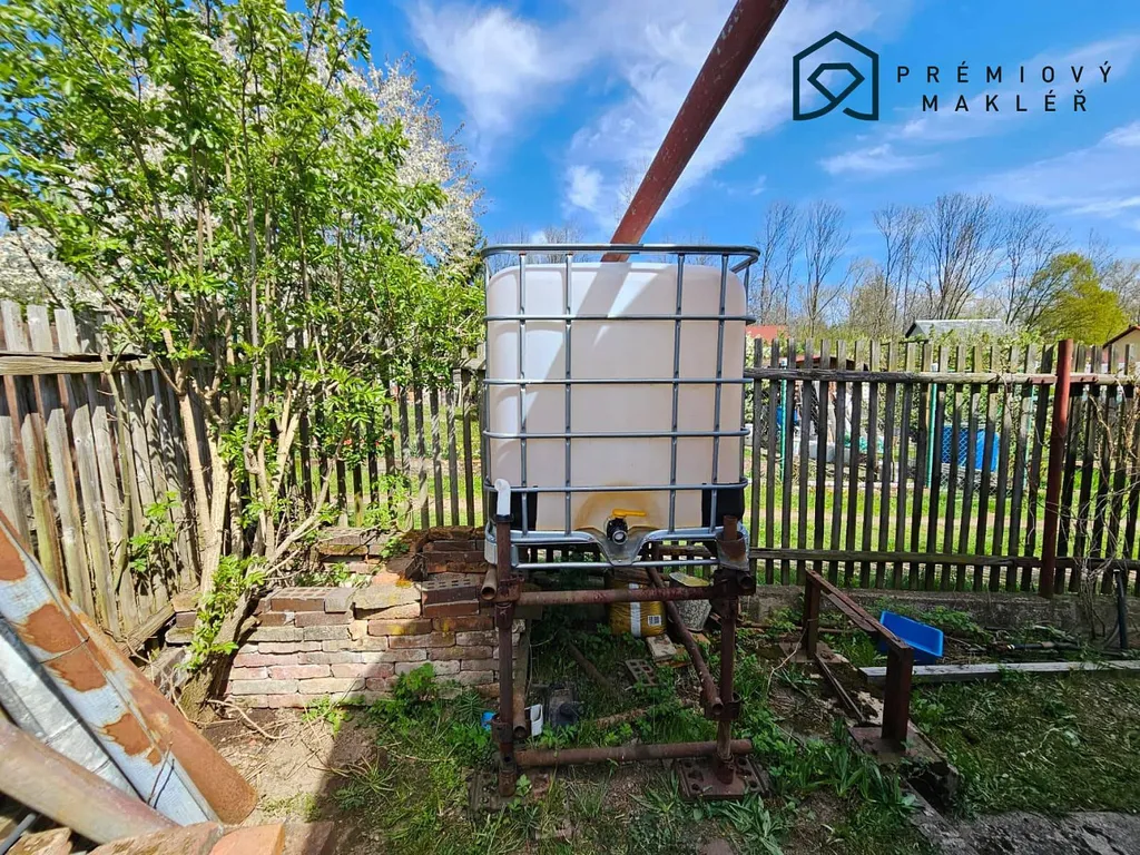 Na pozemku se nachází zděný domek o velikosti 16 m², který je podsklepený a disponuje také půdním prostorem. Součástí prodeje je i vybavení chaty, včetně kuchyňské linky, nábytku, lednice, kamen typu Petry a toalety.