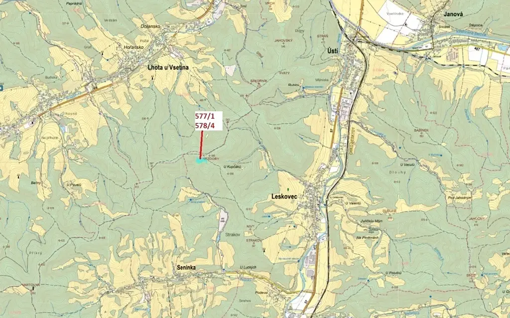 Lesní pozemky o výměře 10 642 m2, parcelní čísla 577/1, 578/4, podíl 1/1, katastrální území Leskovec, obec Leskovec, obec s rozšířenou působností Vsetín, okres Vsetín, Zlínský kraj.