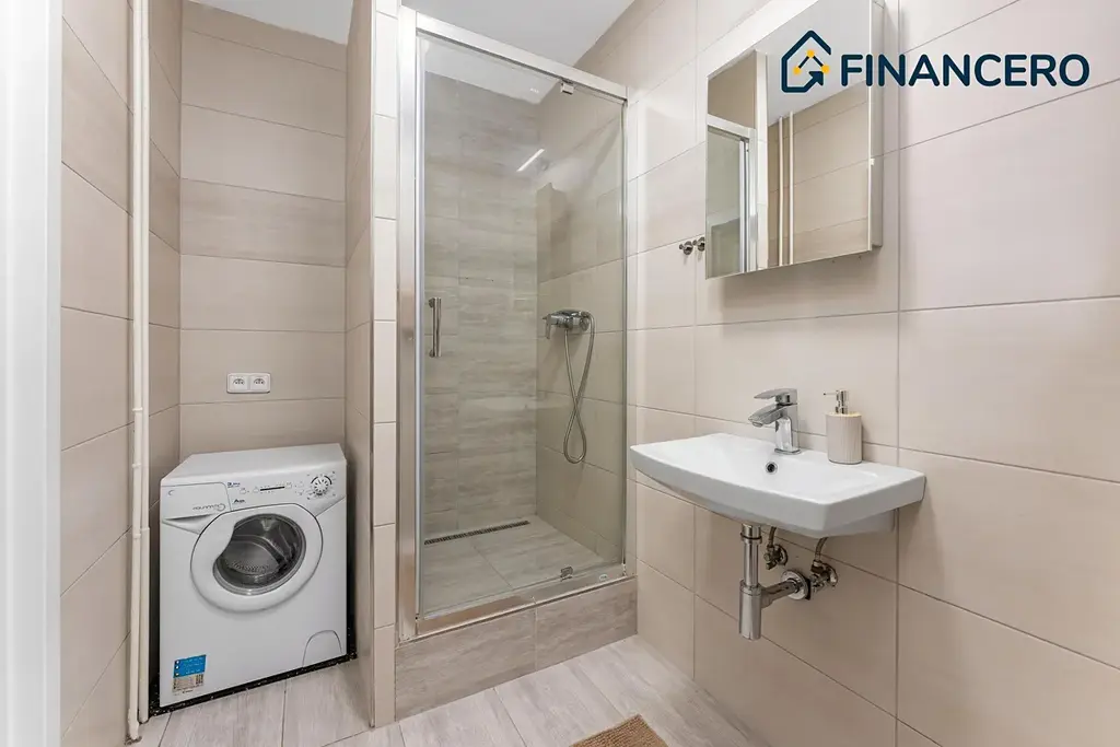 - Koupelna nabízí sprchový kout, WC a prostor pro menší pračku.