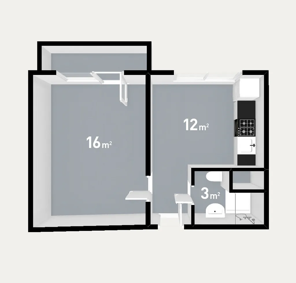 Celková podlahová plocha bytu je 32 m² + navíc je k ploše bytu balkon (s výhledem do klidové části) o výměře 4,1 m² a sklep o výměře 1,7 m².