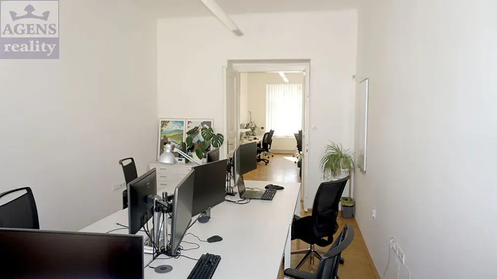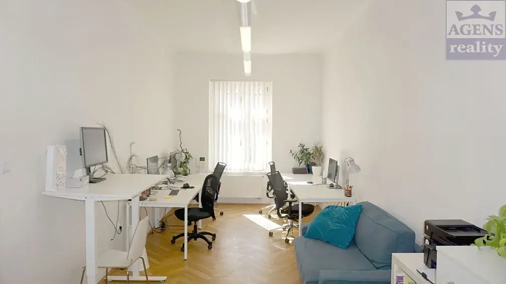 Kanceláře s parketami na podlahách jsou vytápěné etážovým topením s vlastním plynovým kotlem a jsou vybavené datovými sítěmi, svítidly a vertikálními žaluziemi. Kuchyňka je zařízená kuchyňskou linkou s myčkou a chladničkou. Okna jsou orientovaná na východ a na západ do klidného vnitrobloku a mají vsazená vakuovaná dvojskla. Prostory se nabízí se do nájmu nezařízené.