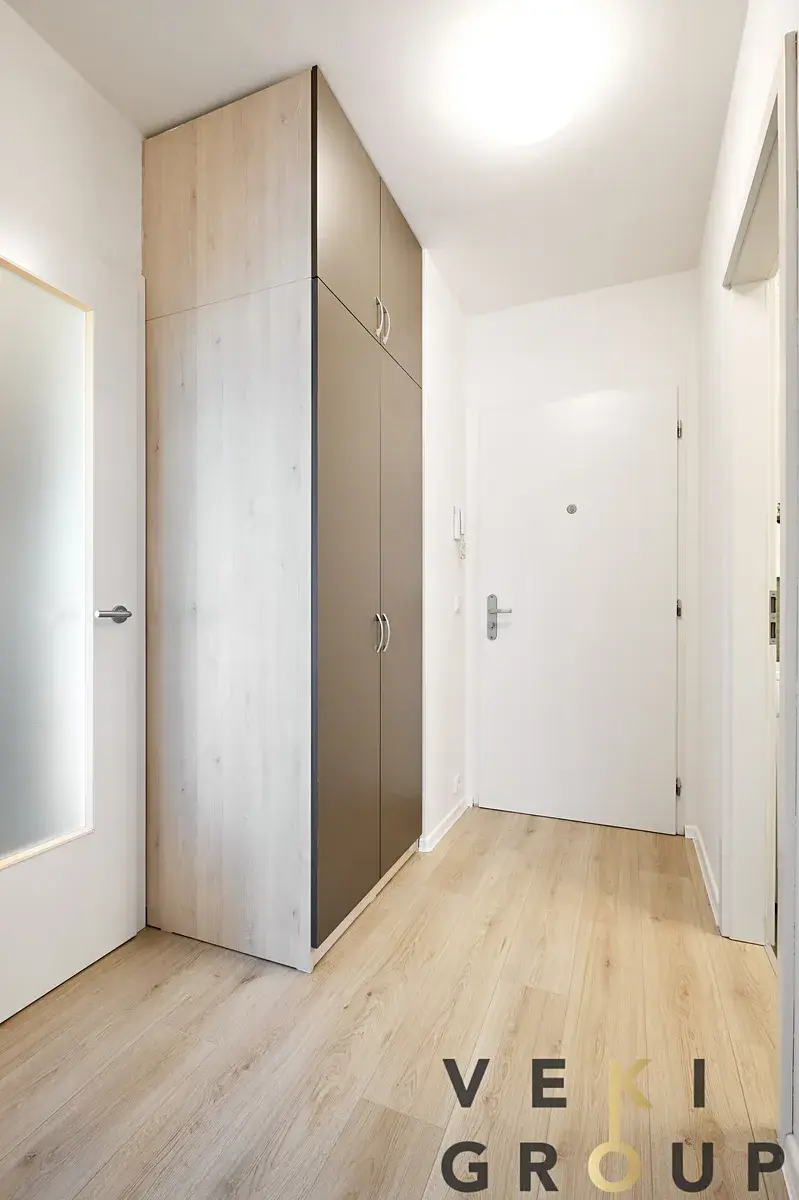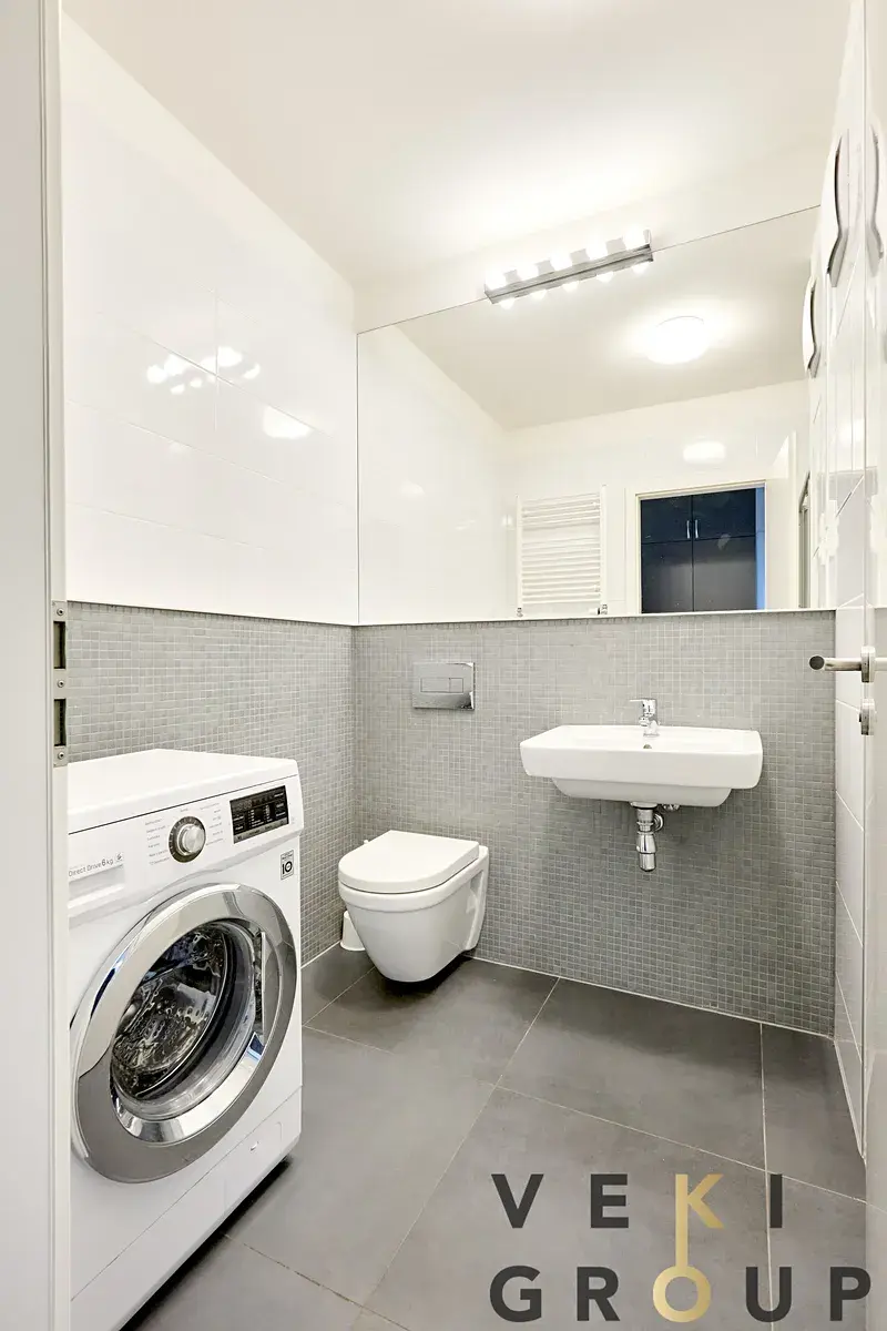 Světlá bytová jednotka s nadčasovým interiérem vyrobeným na míru a garážovým stáním.