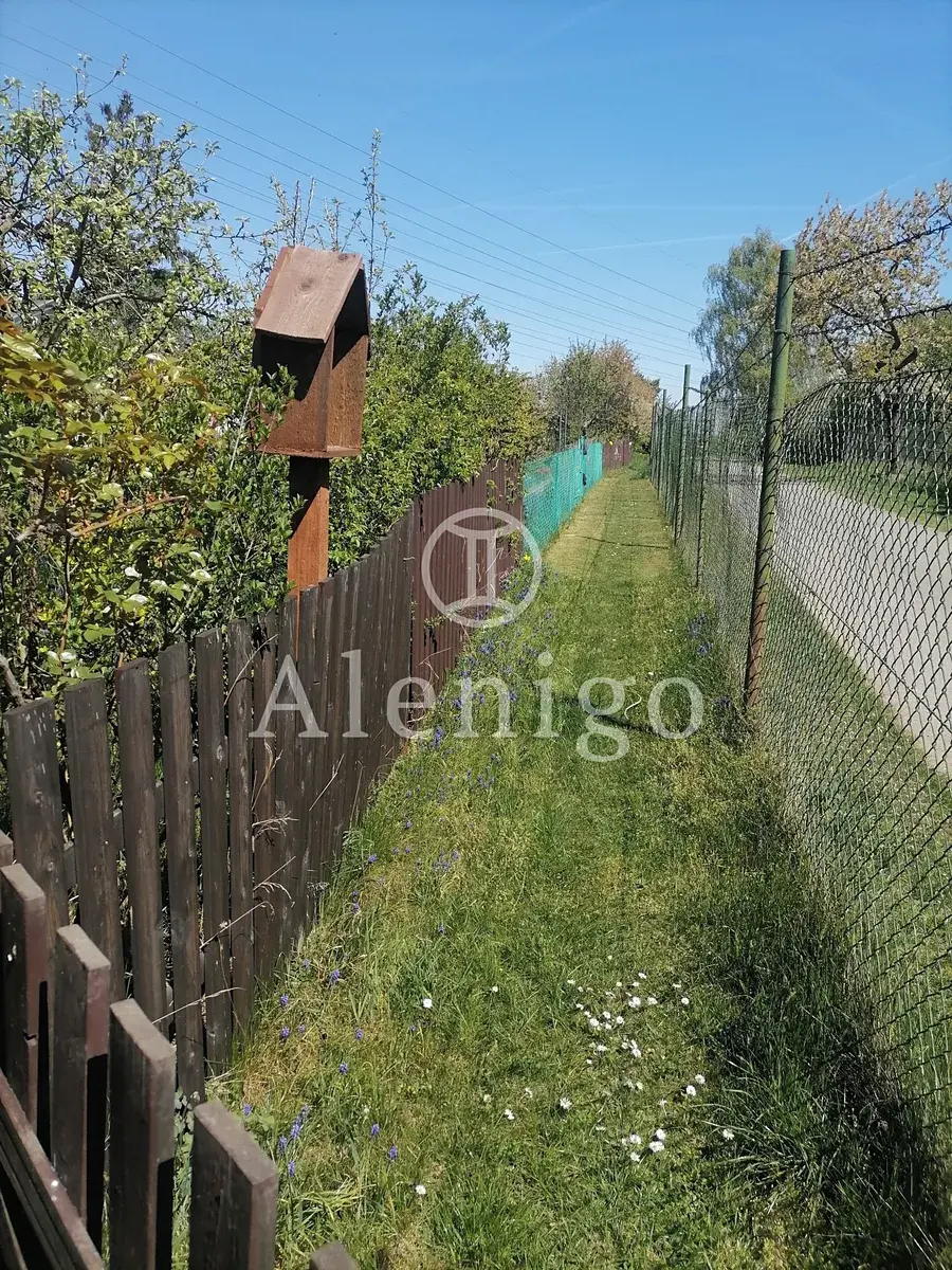 Chata stojí na pronajatém pozemku a je obklopena krásnou přírodní zahradou s okrasným jezírkem, vzrostlou zelení a květinami, které vytvářejí jedinečnou atmosféru po celý rok.