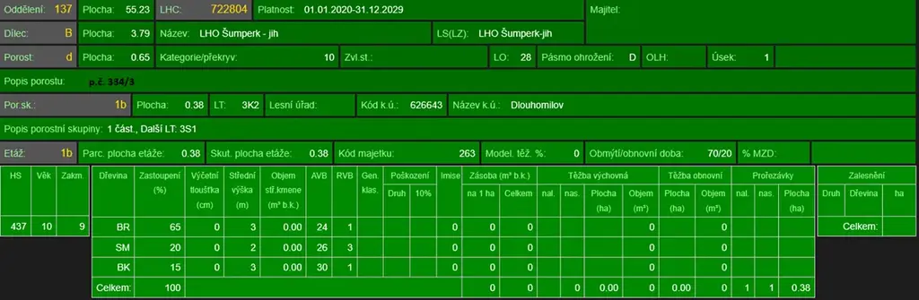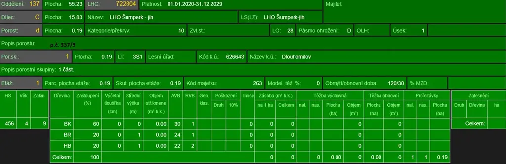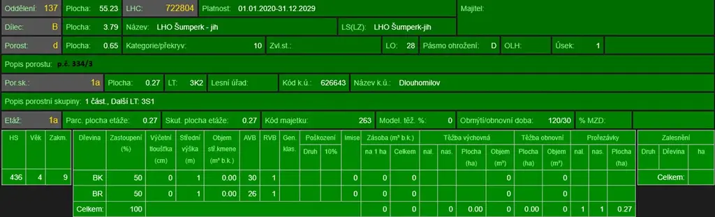 - p.č. 334/3 vedená jako lesní pozemek o celkové výměře 6 427 m2, z toho vlastníme podíl 1/6 tedy 1 071 m2 (stáří lesa 16 let - zastoupení dřevin bříza, smrk, buk, stáří lesa 10 let - zastoupení dřevin buk, bříza),