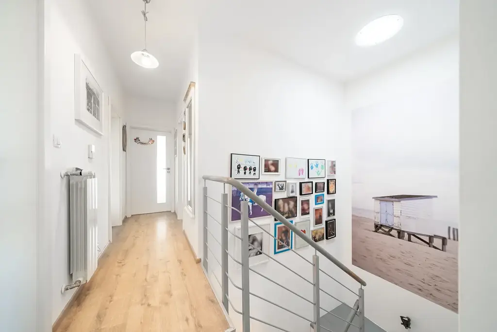 Přímý majitel nabízí k prodeji trendový řadový rodinný dům s dispozicí 5+kk a garáží,pozemek 290m s užitnou plochou 153 m2,zahradou za domem o výměře 137 m2, dalším pozemkem před domem o velikosti 43 m2 v jihozápadní části Prahy 12, Cholupice. Dům je součástí rezidenční klidové zóny obce, vystavěné postupně v roce 2015. Dům samotný je patrovou, nepodsklepenou zděnou stavbou s rovnou a mírně šikmou střechou. Dispozice domu je rozdělena do dvou podlaží. Přízemí domu s hlavním vstupem do domu a integrovanou garáží, je řešeno jako 1+kk a je společenským patrem celého domu. Zádveří domu je prostorné natolik, že je zde prostor pro šatnu i technické zázemí domu. Obývací pokoj s elektrickým krbem je volně průchozí s kuchyňským koutem a tvoří tak jeden otevřený prostor. Příjemným bonusem je přímý vstup na zahradu domu a zastřešenou terasu s venkovním posezením. Zahrada za domem je klidným místem pro venkovní posezení s rodinnou a grilování s přáteli. Kuchyně je vybavena moderní kuchyňskou linkou v šedém dřěvěném provedení s vestavnými spotřebiči. Součástí podlaží je také koupelna vybavená sprchovým koutem, umyvadlem, zrcadlem a wc. V 1.NP propojeným s přízemím schodištěm se dřevěnými nášlapnicemi, se nachází 4 ložnice, dvě s orientací do zahrady, dvě do ulice. Dále pak prostorná koupelna s vanou, dvěma umyvadly, zrcadlem. V této koupelně je dostatek místa, tak je zde i pračka a sušička. Dále pak samostatné wc. Je to klidová část domu. Každý z pokojů má velké francouzské okno s nerušícím výhledem do zahrady nebo okolí domu. Rodičovská ložnice pak nabídne navíc šatnu oddělenou posuvnými dveřmi. Dům je napojen na všechny dostupné IS a primárním zdrojem tepla je plynový kotel s radiátory. K základním standardům domu patří kvalitní okna, plovouci drevena podlaha a dlažba...v oknech bezpečnostní hliníkové žaluzie. Stejně tak optický kabel nebo zabezpečovací zařízení. Dum je prodáván včetně veškerého vybavení a luxusního dřevěného nábytku na míru, jako například knihovna v obývacím pokoji, 2x dětský pokoj s vybudovaným patrem na spaní, king size postel 220x200cm s vysokým čaloněným čelem, vybavený pokoj pro hosty atd prochazkou je možné se vydat do lesů a parků v nejbližším okolí. Modřanská rokle, hriste a letiste Točná, cyklostezky. Stejně tak za aktivním odpočinkem, tenis, jízda na koni, fotbal, apod. Městská část Cholupice, je místem s výbornou dopravní dostupností. Zastávka busu linky č.341 je 1 min. v pochozí vzdálenosti od domu. Bus je za 8 minut na tram c.17,3,21 spojení s centrem Prahy za 15min. Autem je perfektní dostupnost i na Smíchov a Anděl cca 15 min, kousek je nájezd na Pražský okruh. Základní služby občanské vybaveností jsou v dosahu a otázkou pár minut autem nebo MHD v Modřanech. Obec Cholupice je v posledních letech velice vyhledávanou lokalitou pro bydlení, a to i díky své klidové podobě a možnostem aktivního života a přitom na dosah vymoženostem Prahy. Možné financovat hypotečním úvěrem.. Více na osobní schůzce a prohlídce.