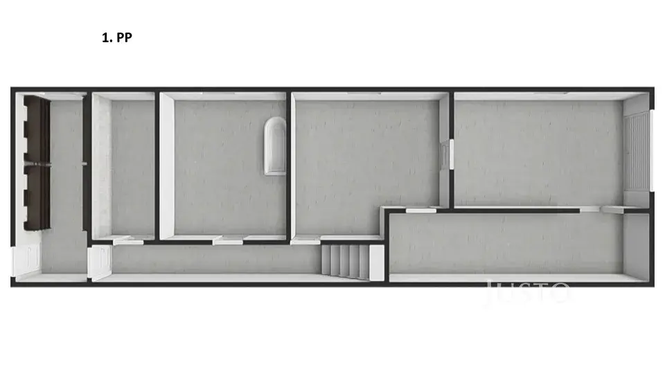 Dispozice domu je 5 +1, z toho 4 neprůchozí, což zajišťuje dostatek soukromí a prostoru pro větší rodinu. Celé přízemí lze jednoduchým způsobem upravit na jeden velký prostor (ve videu a u fotografií je přiložena vizualizace). K dispozici jsou dvě nadzemní podlaží a jedno podzemní podlaží s prostorným sklepem a garáží o velikosti 71 m². Dům je kompletně vyklizen a připraven k okamžitému využití dle potřeb nového majitele.