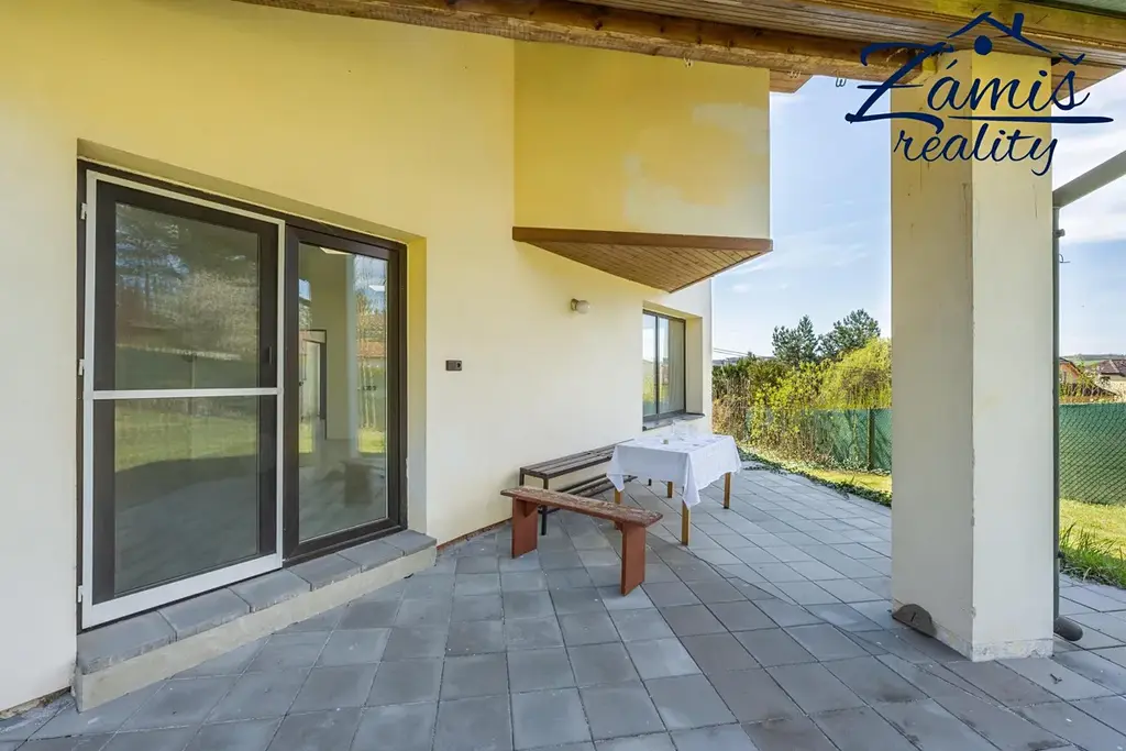 Zahrada, zakomponovaná v mírném svahu, nabízí velmi příjemné soukromí a klid pro každodenní relax.